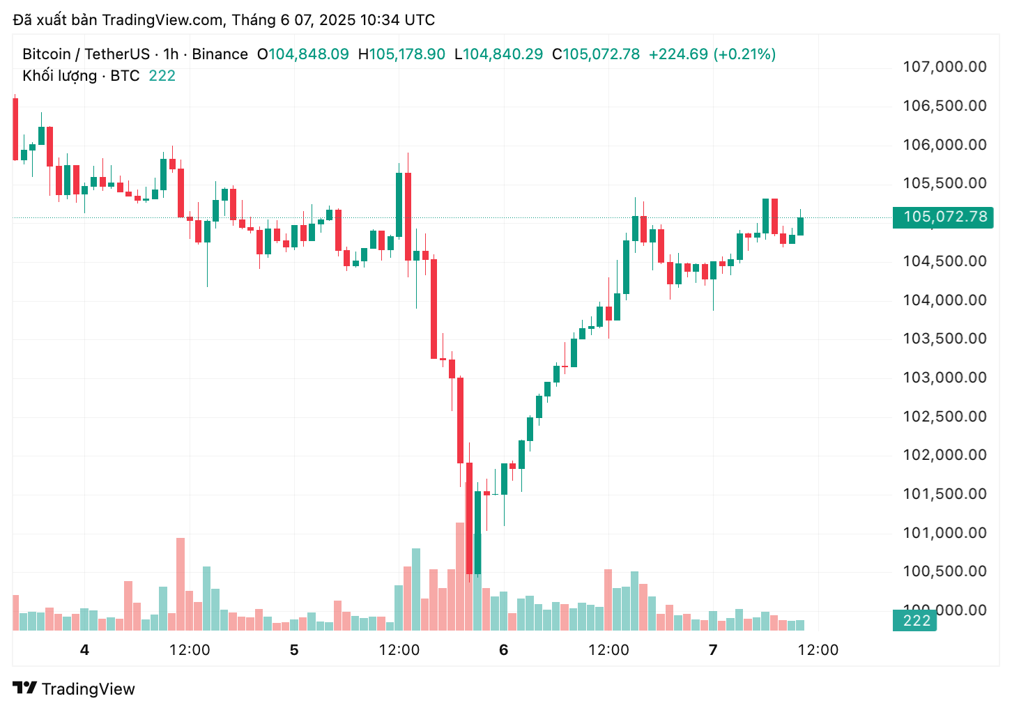 Hiện tại, giá Bitcoin đang giao dịch quanh mốc 105.000 USD, tăng hơn 1% trong 24 giờ qua. Mặc dù giá của Bitcoin có thể vẫn giữ được sự ổn định nhất định trong dài hạn, nhưng những căng thẳng trong nền kinh tế vĩ mô và thị trường lao động đang tạo ra môi trường đầy biến động và không chắc chắn.