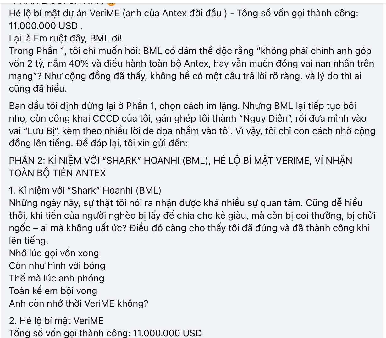 Khi ra mắt dự án, Shark Bình đã viết bài đả kích trên Facebook “những người Việt crypto xấu xí” luôn đố kị và âm mưu đen tối với những dự án crypto “tử tế” như AntEx.