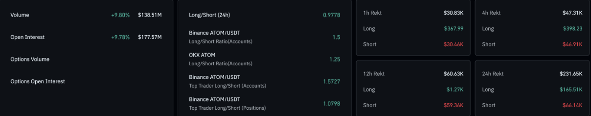Dữ liệu phái sinh ATOM. Nguồn: CoinGlass