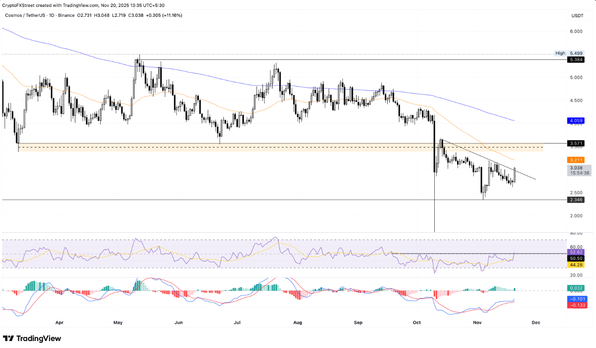 Tuy nhiên, trong trường hợp Cosmos không giữ vững được mốc 3,00 USD và quay đầu giảm, giá có thể rơi về kiểm tra lại đáy ngày 4/11 tại 2,34 USD.