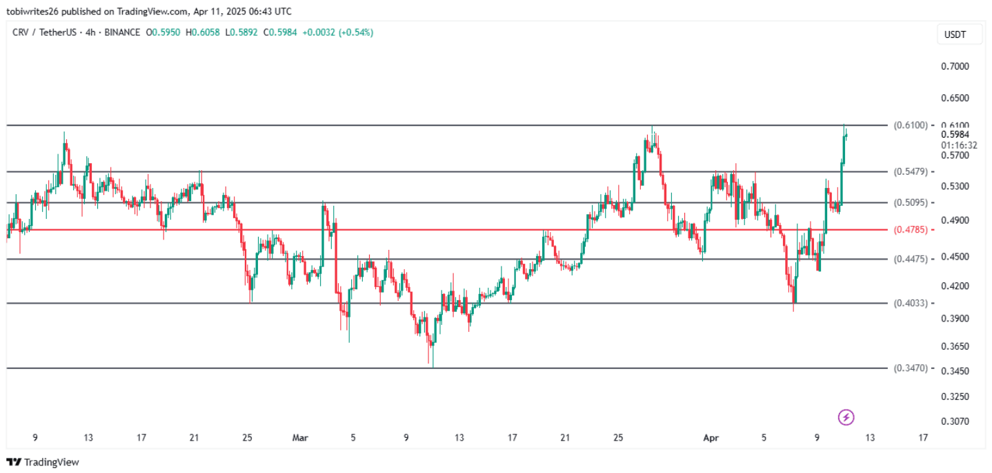 CRV có khả năng sẽ trải qua một nhịp điều chỉnh nhẹ trước khi tiếp tục xu hướng tăng. Hiện tại, giá đang tiếp cận vùng kháng cự quan trọng quanh mốc $0,61 – vùng từng khiến CRV bị từ chối trong lần thử sức trước đó.