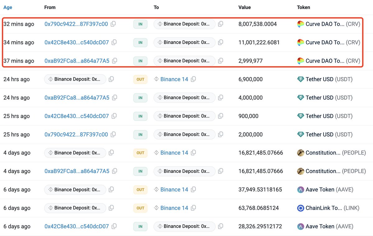 Công ty theo dõi blockchain Lookonchain báo cáo rằng một cá voi đã gửi hơn 6 triệu đô la CRV đến Binance, có lẽ là để cắt lỗ.