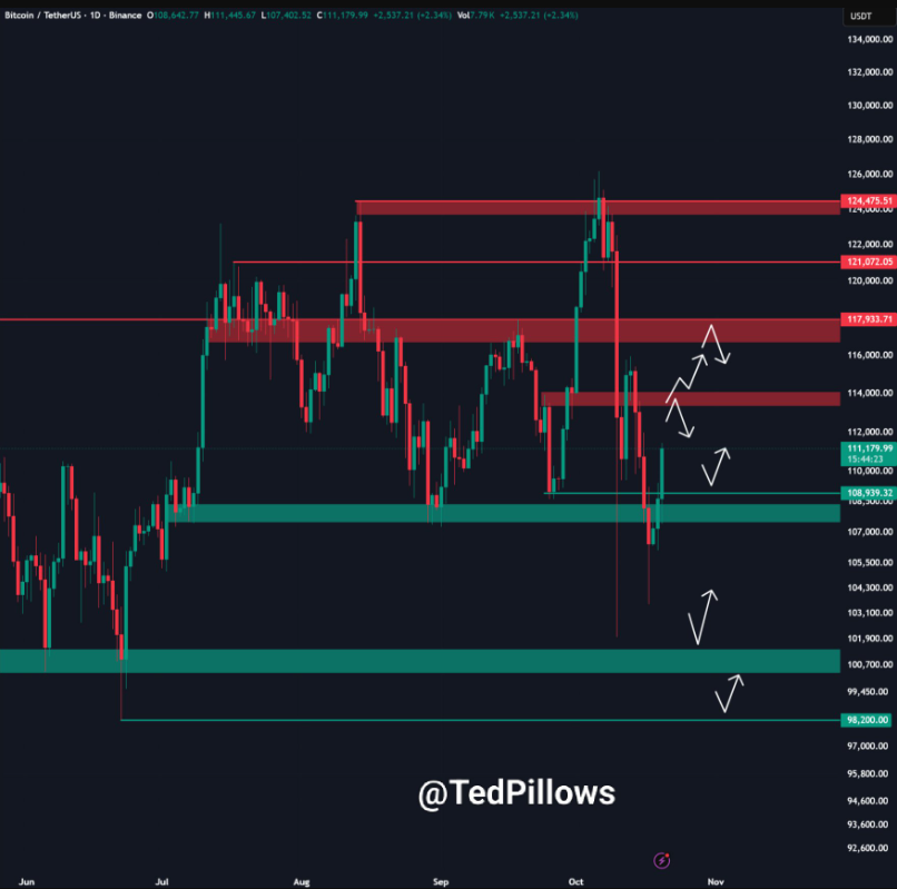Trong khi đó, nhà phân tích Ted Pillows đánh giá 112.000 USD là mốc quan trọng cần giành lại để củng cố đà tăng. “Với căng thẳng thương mại Mỹ – Trung đang hạ nhiệt, tôi tin BTC còn dư địa tăng thêm,” Pillows chia sẻ trên X.