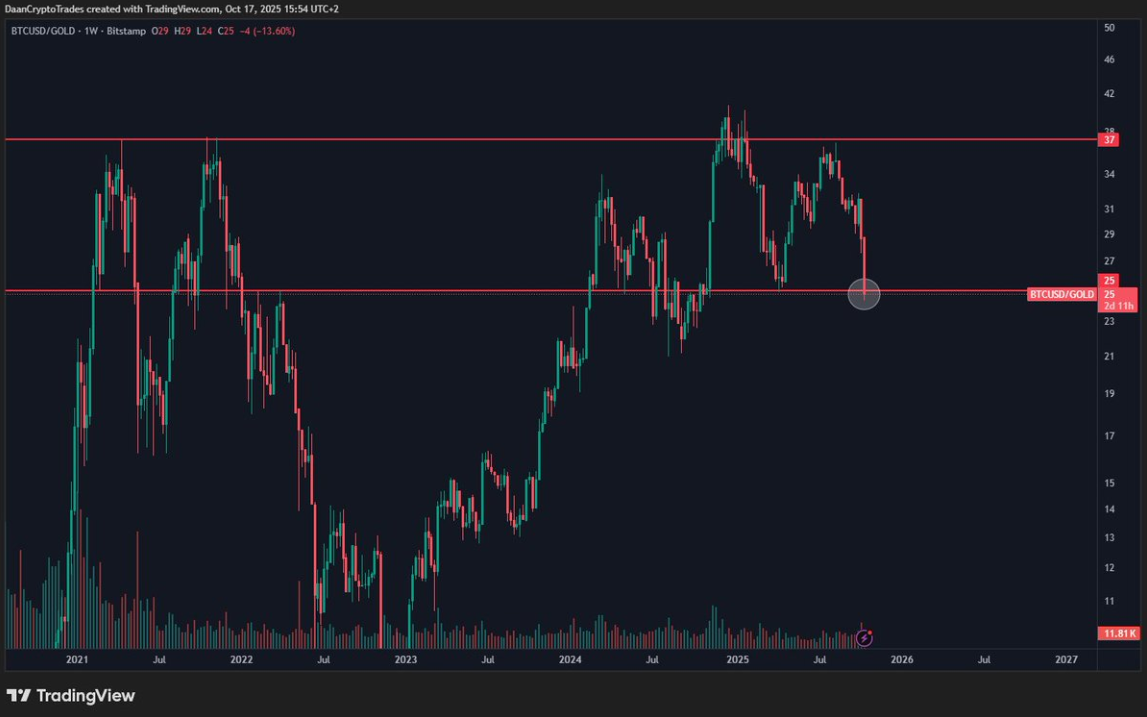 “Vàng đã có một năm bứt phá mạnh mẽ, trong khi BTC vẫn khá trầm lắng,” nhà phân tích Daan Crypto Trades viết, đồng thời nhận định rằng nếu vàng tạm hạ nhiệt, một phần dòng vốn có thể quay trở lại các tài sản rủi ro hơn như cổ phiếu và tiền điện tử.