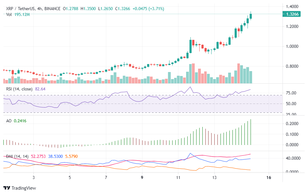 Khi XRP đã giảm từ mức cao nhất mọi thời đại 3,31 xuống dưới 1 đô la đã khiến các nhà đầu tư và trader hoảng sợ. Tuy nhiên, giá tăng trở lại giúp họ thở phào nhẹ nhõm, cao hơn gần 63% trong tuần qua. Thật kỳ lạ, Bitcoin, ETH và thậm chí cả BNB đang có mức lợi nhuận thấp hơn so với XRP. Token gốc của Ripple hiện là một trong những coin tăng giá hàng tuần nhiều nhất tại thời điểm viết bài (chỉ đứng sau XDC và AXS).