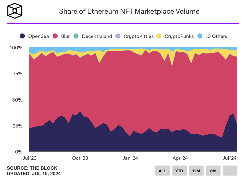 Blur từ lâu đã là đơn vị dẫn đầu về khối lượng không thể tranh cãi, liên tục chiếm 60% đến 80% thị phần trong năm nay. Thành công của nền tảng này có thể là do một số yếu tố: