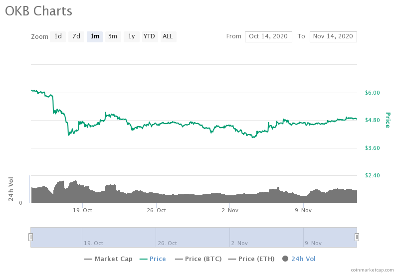 Biểu đồ giá OKB 1 tháng | Nguồn: CoinMarketCap