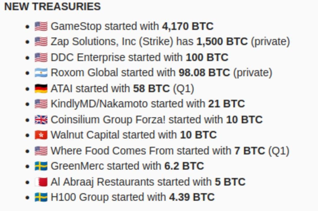 Nhận định của CZ được đưa ra trong bối cảnh ngày càng nhiều công ty bổ sung Bitcoin vào bảng cân đối kế toán. Theo dữ liệu từ Bitcoin Treasuries, hiện đã có hơn 200 doanh nghiệp nắm giữ Bitcoin, trong đó có những cái tên đáng chú ý mới tham gia như Trump Media và GameStop.