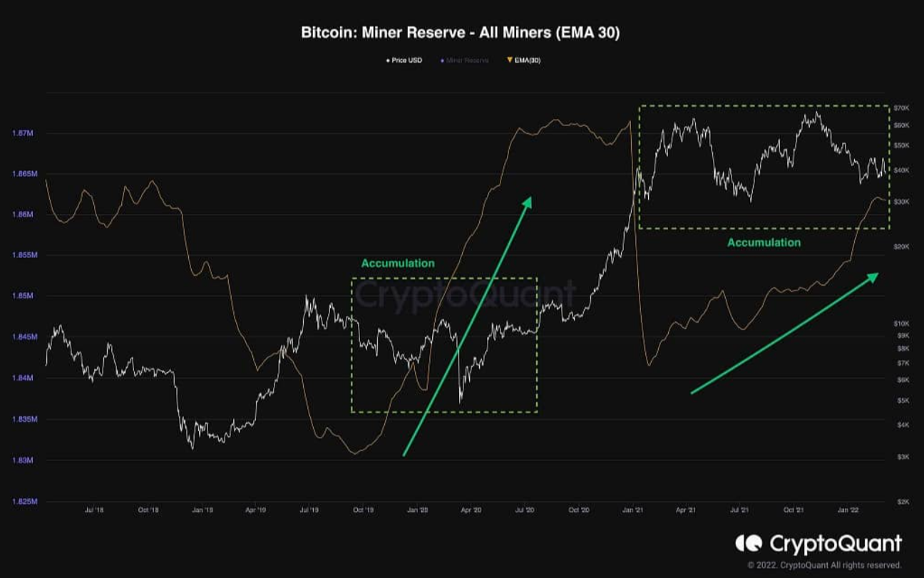 Sau sự kiện phân phối lớn này, sự tích lũy chậm và ổn định đã bắt đầu trở lại. Hành vi này rất giống với thời điểm đầu năm 2020 và sự củng cố của giá trước đợt tăng, cho thấy rằng các thợ đào mong đợi mức giá cao hơn trong dài hạn và không bị lay động trong đợt giảm hiện tại.