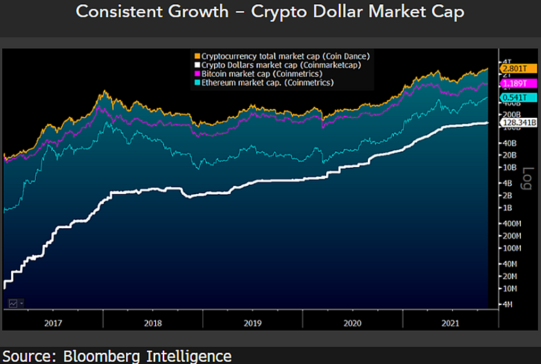 McGlone cũng nhấn mạnh ba thành phần chính thúc đẩy sự phát triển của thị trường tiền điện tử, bao gồm Bitcoin, Ethereum và số lượng lớn stablecoin, mà ông gọi là “đô la tiền điện tử”.