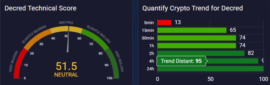Giá DCR hiện đang giao dịch trong một mô hình tam giác đối xứng, hình thành sau đợt tăng mạnh vào tháng 11. Mức giá duy trì trên 22 USD – đáy cao nhất trước khi bứt phá – đồng thời nằm trên chỉ báo SuperTrend sau khi đảo chiều vào ngày 9/11, cho thấy lực mua vẫn vững.