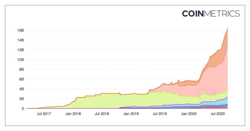Dữ liệu do nền tảng phân tích dữ liệu on-chain Coin Metrics công bố gần đây cho thấy nhu cầu về DeFi đã làm tăng đáng kể nhu cầu về stablecoin. Điều này đã dẫn đến sự gia tăng hàng ngày trong vốn hóa thị trường kết hợp của các stablecoin lên 100 triệu đô la trong hai tháng qua.