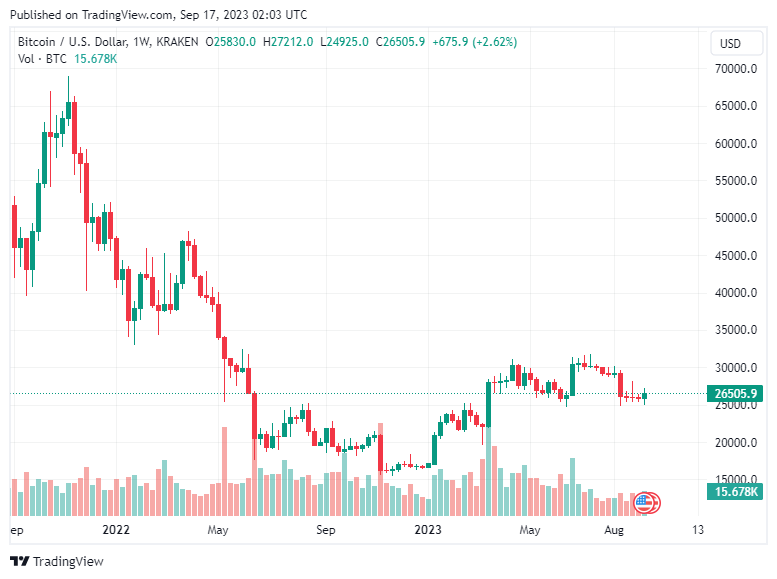 Biểu đồ giá BTC – 1 tuần | Nguồn: TradingView