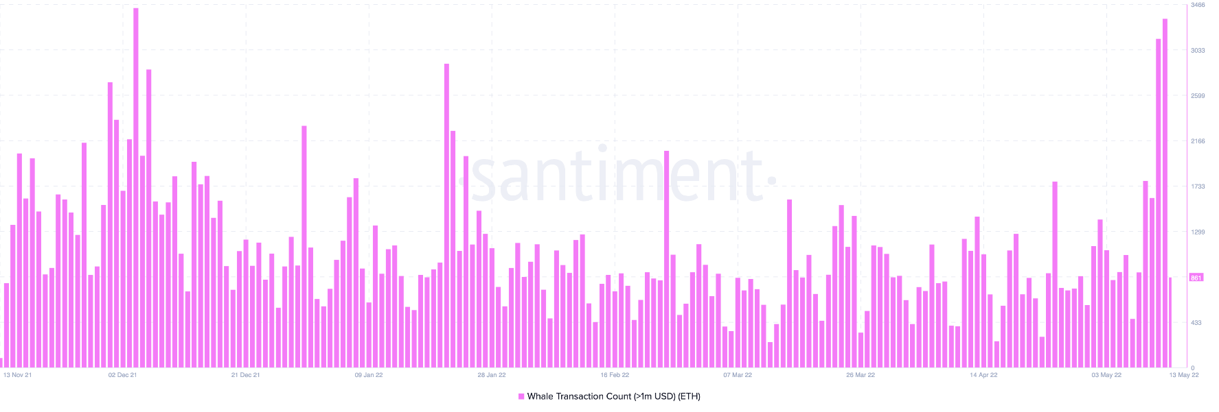 Quan sát dữ liệu on-chain, số lượng giao dịch cá voi đã vượt ngưỡng 3.000 từ ngày 11-12/5 cho thấy xu hướng phát triển trong những ngày tiếp theo.