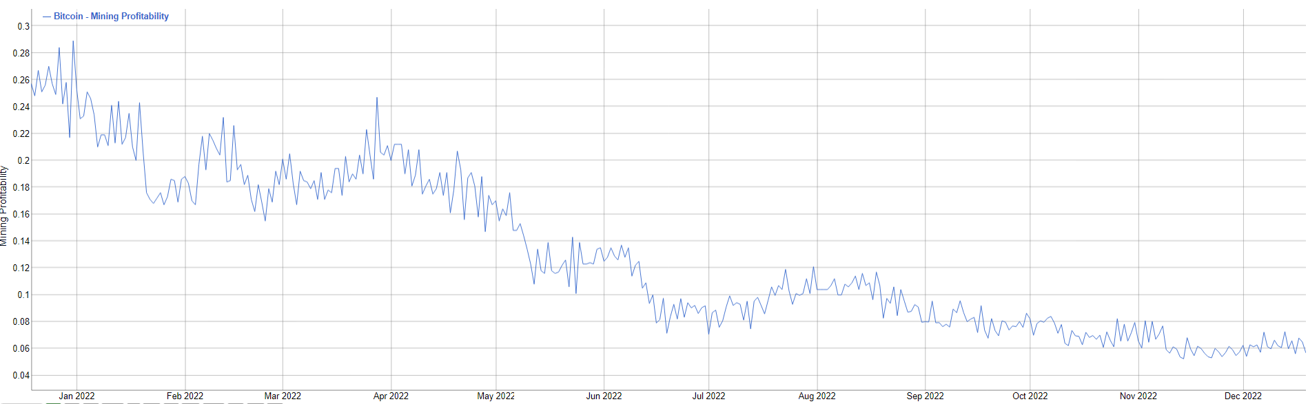 Tỷ lệ sinh lời của hoạt động khai thác Bitcoin ở mức 0,0558 đô la mỗi terahash mỗi giây trong 24 giờ qua, giảm từ 0,248 đô la so với một năm trước, dữ liệu từ BitInfoCharts cho thấy.