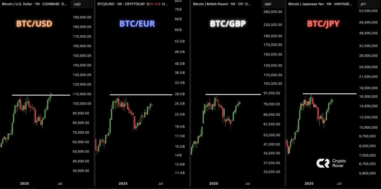 Nhà phân tích Crypto Rover nhận định rằng Bitcoin đạt đỉnh cao mới chủ yếu do đồng USD đang rất yếu, và trong tương lai, các đồng tiền mạnh khác cũng sẽ chịu ảnh hưởng tương tự trước sức mạnh của Bitcoin.