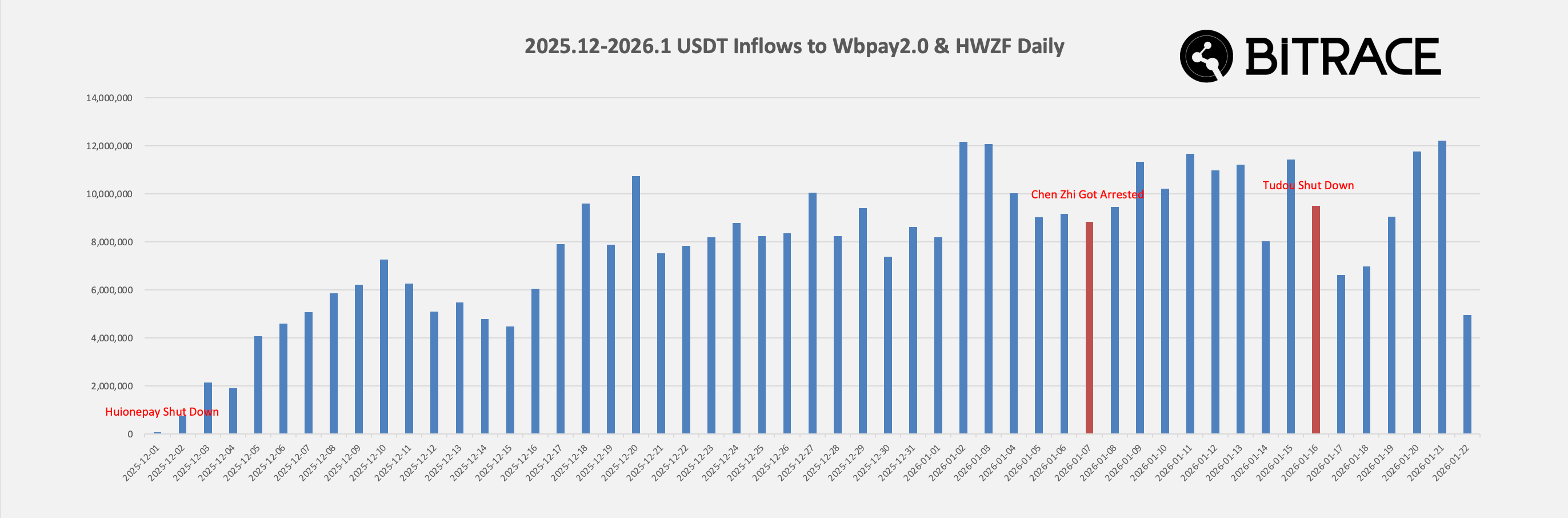 Dữ liệu mới từ công ty phân tích blockchain Bitrace cho thấy các hoạt động này vẫn diễn ra ở quy mô lớn, bất chấp những động thái thực thi pháp luật gần đây nhằm vào các nhà cung cấp dịch vụ thanh toán của chúng.