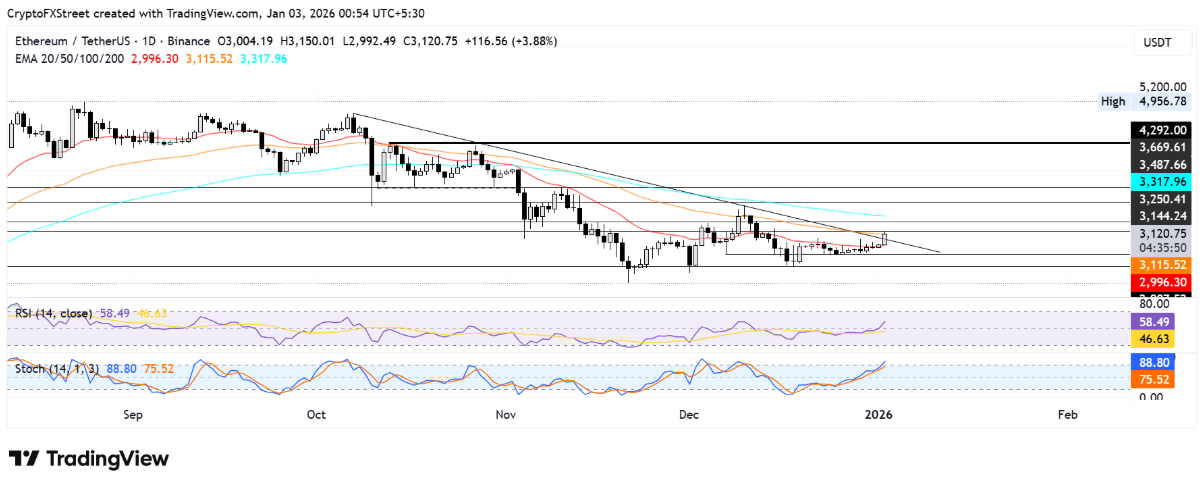 Dự báo giá Ethereum: ETH phá vỡ mô hình tam giác giảm, kiểm tra vùng kháng cự 3.150–3.250 USD