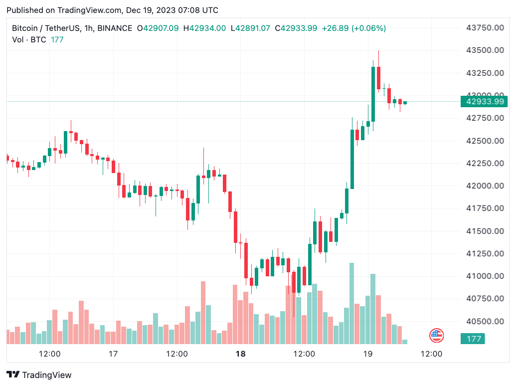 Ở mức khoảng 41.300 đô la, mức đóng cửa hàng tuần vào ngày 17 tháng 12 đã diễn ra giữa đợt bán tháo cục bộ đối với BTC/USD.