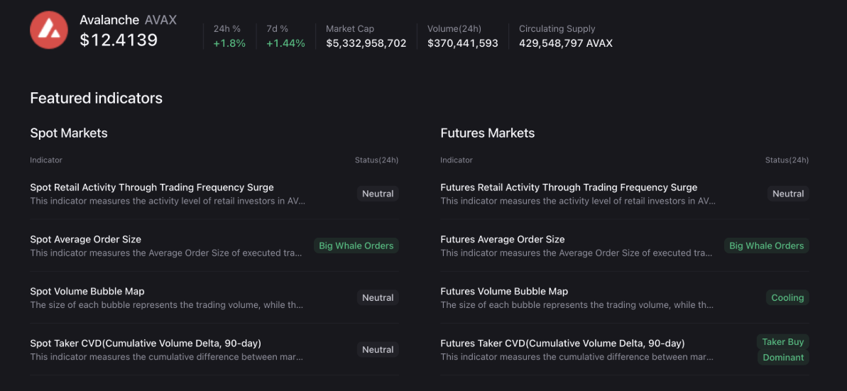 Về mặt động lượng, chỉ số RSI hiện quanh mức 41, phản ánh áp lực bán đang dần suy yếu khi chỉ báo này hồi phục từ vùng quá bán. Đáng chú ý, trong giai đoạn từ ngày 1 đến 18/12, RSI đi ngang trên mốc 30 trong khi giá AVAX hình thành các đáy thấp hơn, qua đó phát đi tín hiệu phân kỳ tăng giá ẩn – một dấu hiệu tích cực cho xu hướng ngắn hạn.