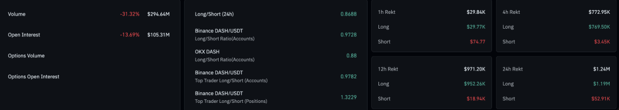 Dữ liệu phái sinh của DASH | Nguồn: CoinGlass