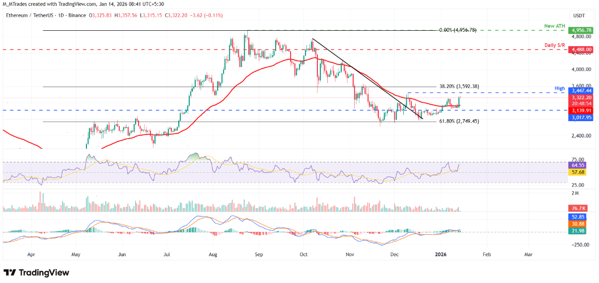 Dù vậy, nhà đầu tư vẫn cần lưu ý rủi ro điều chỉnh. Trong trường hợp áp lực chốt lời xuất hiện, ETH có thể quay lại kiểm tra vùng hỗ trợ quan trọng tại đường EMA 50 ngày quanh mốc 3.139 USD.