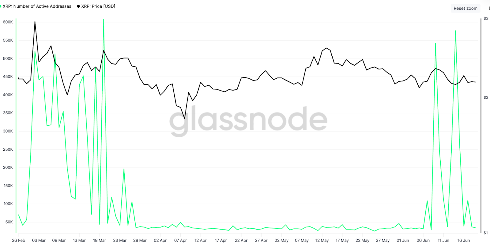 Tương tự, số lượng địa chỉ hoạt động hàng ngày (DAA) trên mạng cũng đã giảm mạnh, từ mức đỉnh 3 tháng là 577.000 vào thứ 7 xuống còn 34.360 vào thứ 5. Điều này cho thấy sự quan tâm giảm sút hoặc thiếu niềm tin vào triển vọng ngắn hạn của XRP.