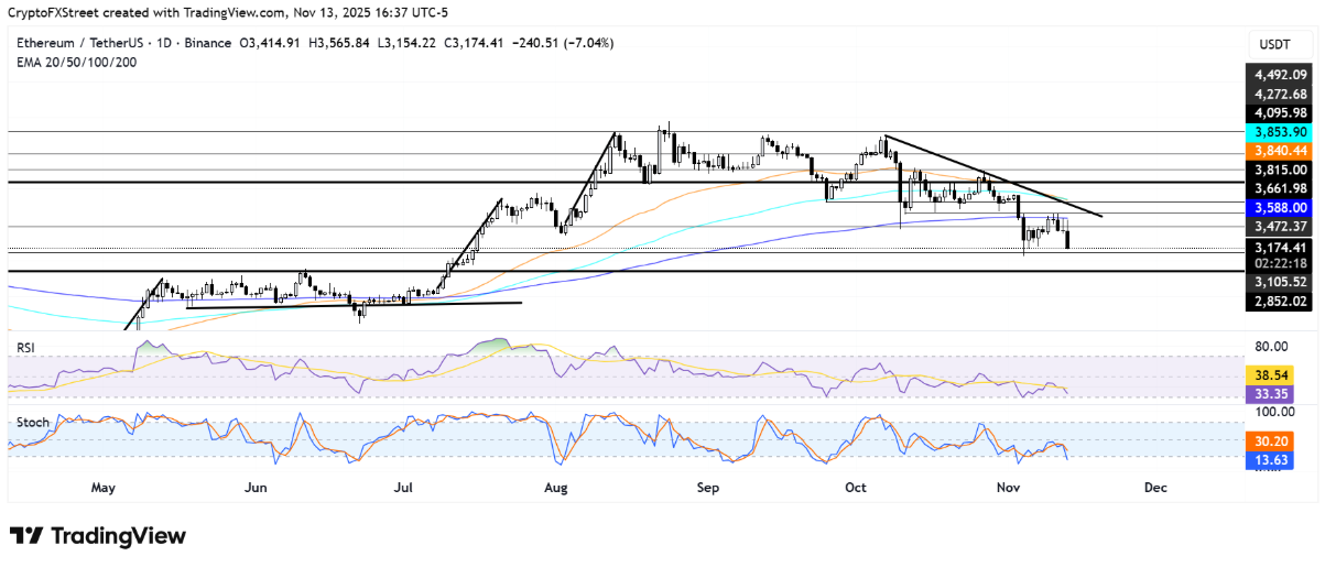 Dự báo giá Ethereum: ETH suy yếu trước đường EMA 200 ngày, hướng về hỗ trợ 3.100 USD