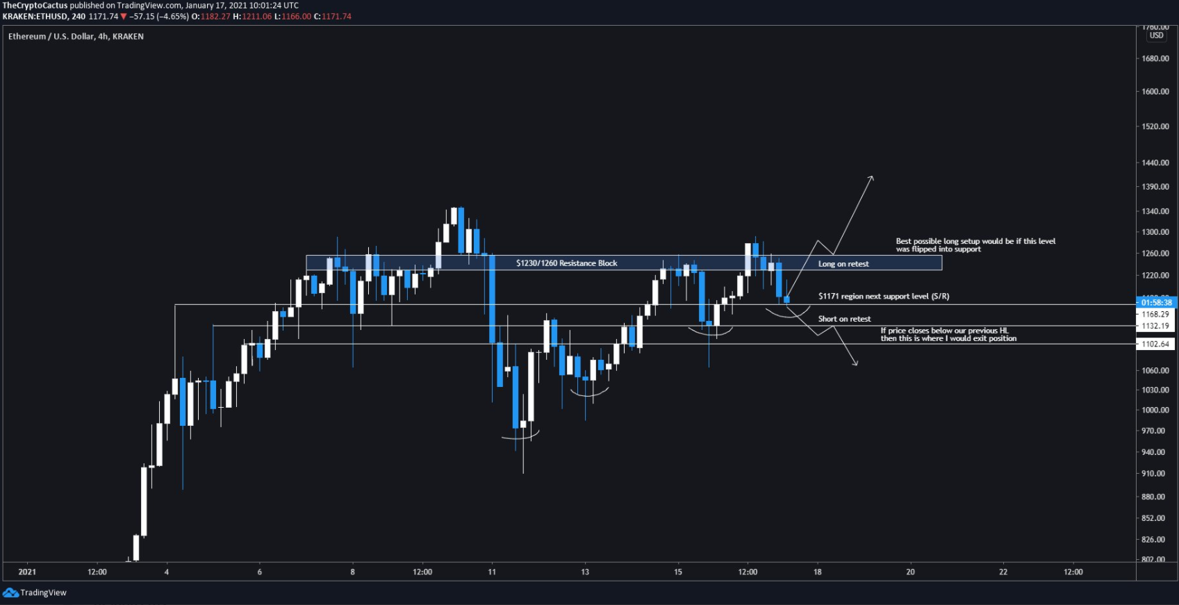 Một nhà phân tích đã giải thích trong một tweet gần đây rằng anh đang theo dõi chặt chẽ việc Ethereum chuyển $ 1.250 thành hỗ trợ trước khi nó có thể thấy bất kỳ mức tăng đáng kể nào trong thời gian tới.