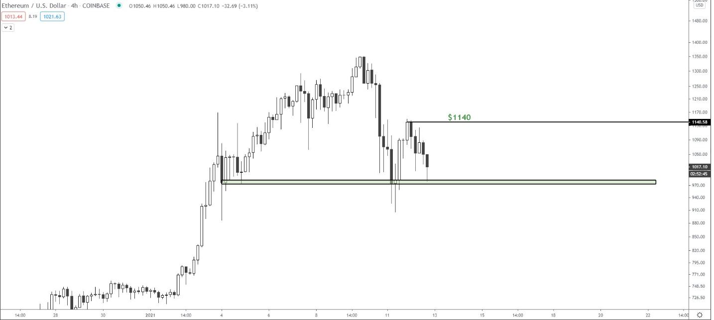 “ETH: Tăng trở lại sau đợt giảm giá ngắn hạn. Giá đã bật lên từ $ 980 và đang tìm kiếm các mức cao hơn. Tuy nhiên để xác nhận việc tăng giá thì nó cần phải đóng cửa nến ngày trên $ 1.140.”