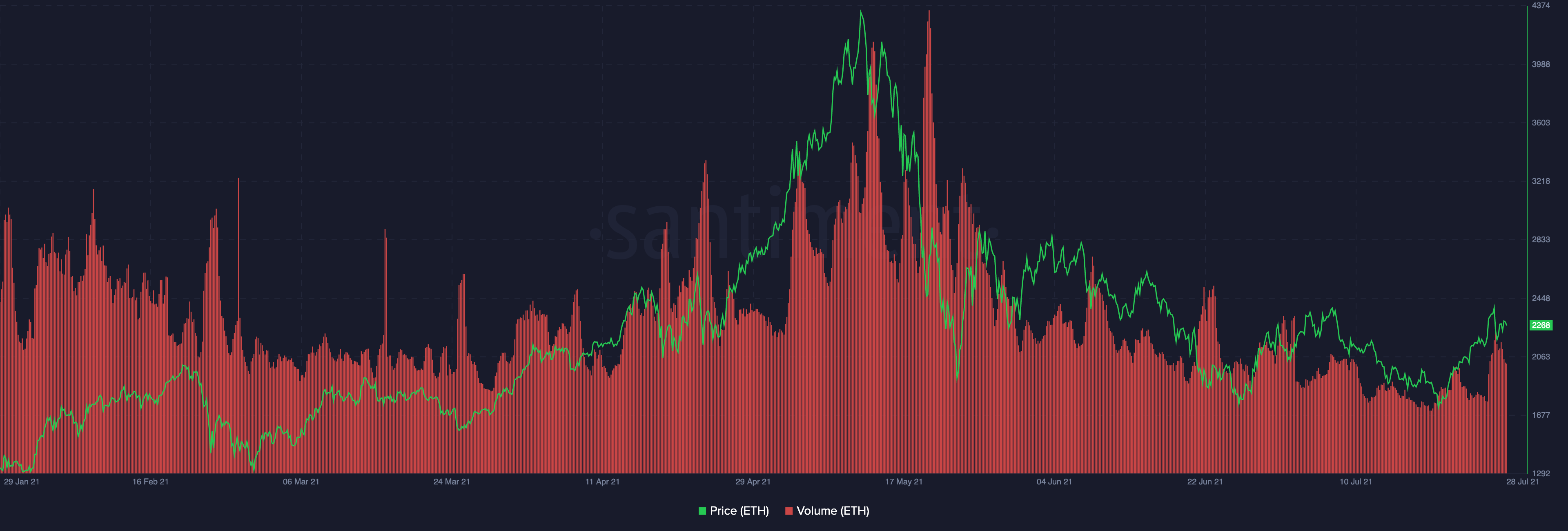 Tháng này khá sôi động đối với ETH. Vào ngày 20/7, ETH được định giá là 1.750 đô la và tăng hơn 23% đến trên 2.300 đô la sau đó nhưng đã giảm nhẹ một chút trở lại 2.282 đô la vào thời điểm viết bài. Ở giai đoạn này, mọi thứ đều xoay quanh vấn đề liệu ETH có thể tiếp tục đà tăng hay không?