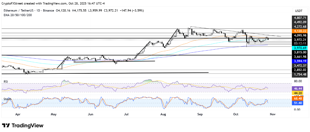 Dự báo giá Ethereum: ETH giảm dưới ngưỡng then chốt 4.100 USD, kiểm tra đường EMA 100 ngày