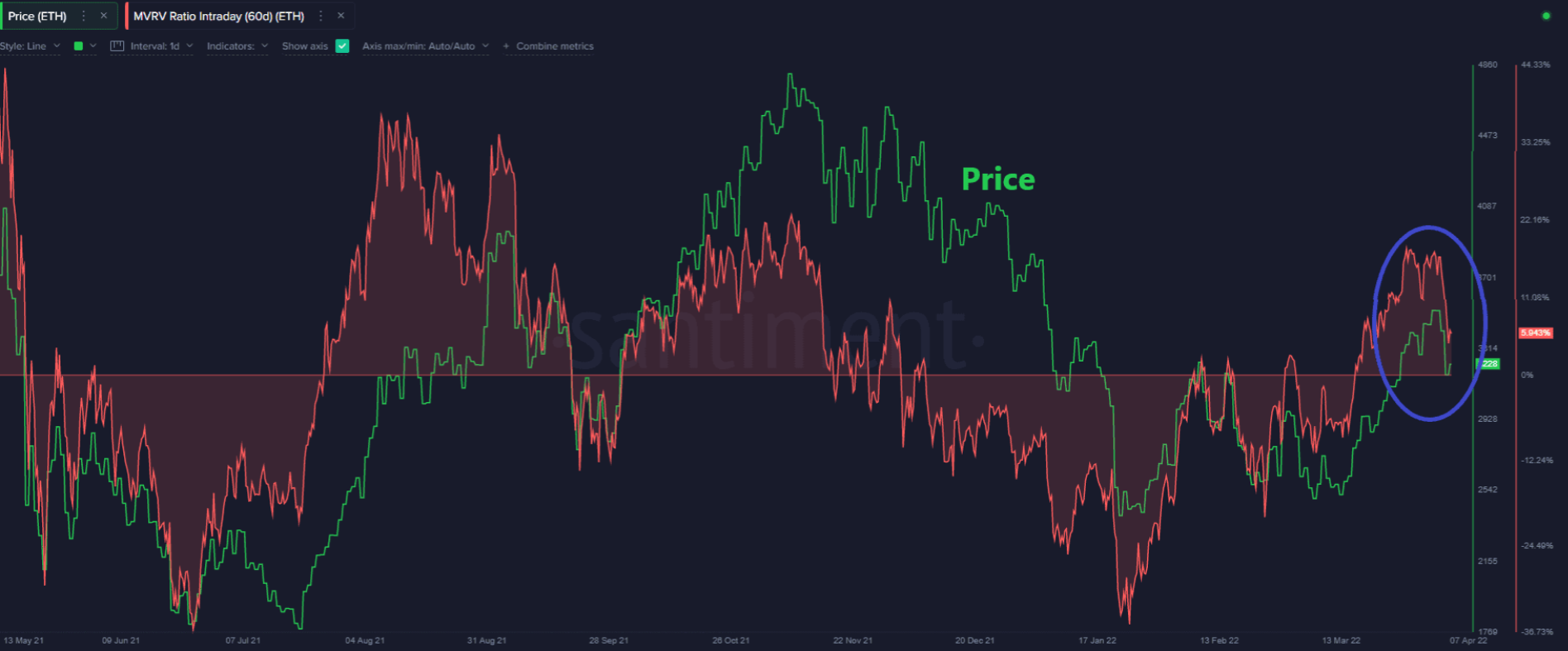 MVRV hiển thị lãi/lỗ trung bình của tất cả các đồng coin đang lưu hành với mức giá hiện tại. MVRV 60d được tính trên các đồng coin đã di chuyển ít nhất một lần trong 60 ngày qua.
