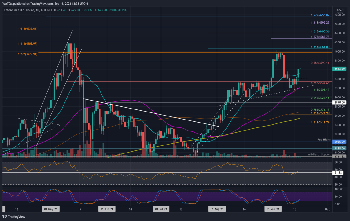 Hôm qua, tiền điện tử đã tăng cao hơn từ $ 3.400, phá vỡ mức kháng cự tại MA 20 ngày và đạt $ 3.600. Động thái này rất quan trọng vì nó cho thấy rằng người mua đang cố gắng phục hồi từ đợt điều chỉnh thị trường được thấy vào tuần trước.