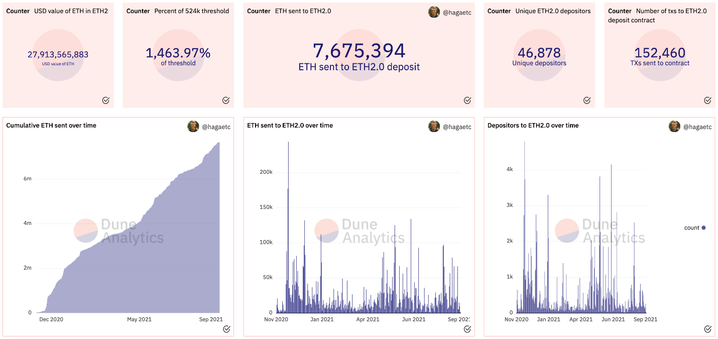 Nhìn chung, khóa ETH trong hợp đồng staking và nguồn cung bị đốt thông qua EIP-1559 đã đưa khoảng 8 triệu ETH (trị giá 28,8 tỷ đô la) ra khỏi lưu thông.