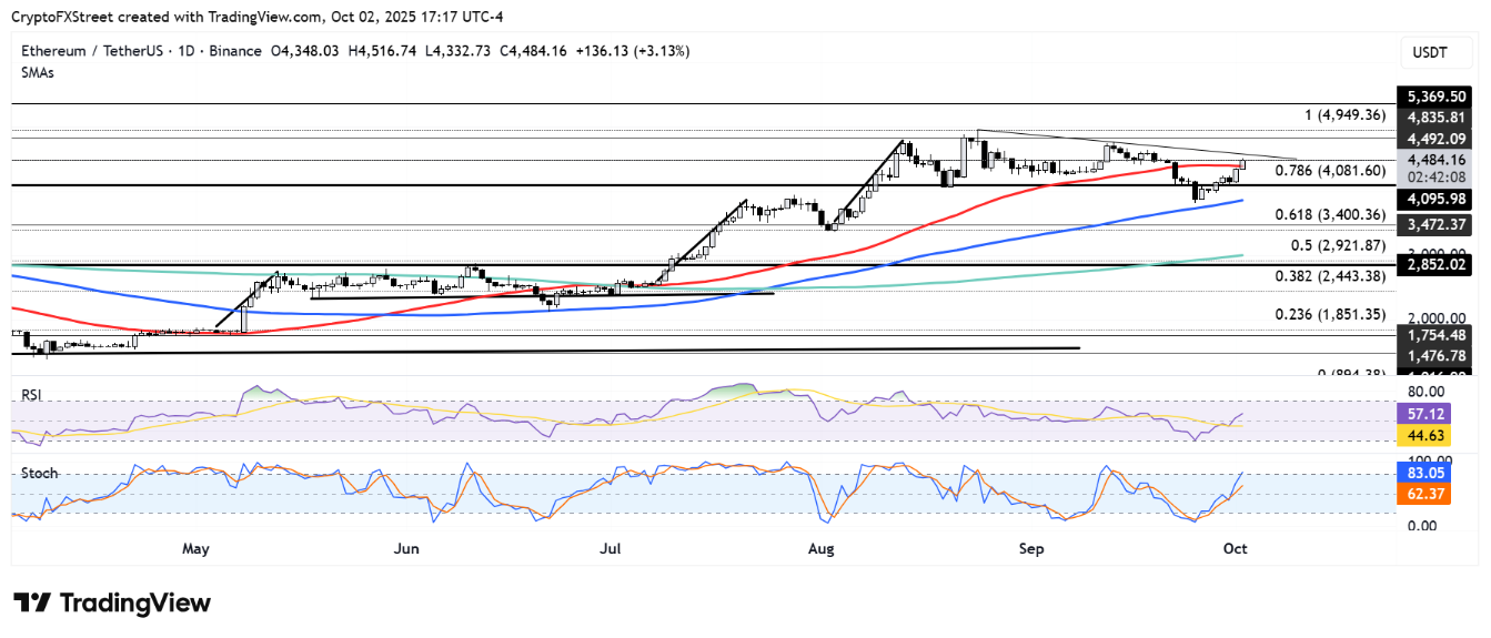 Dự báo giá Ethereum: ETH kiểm tra mốc 4.500 USD sau khi vượt đường SMA 50 ngày