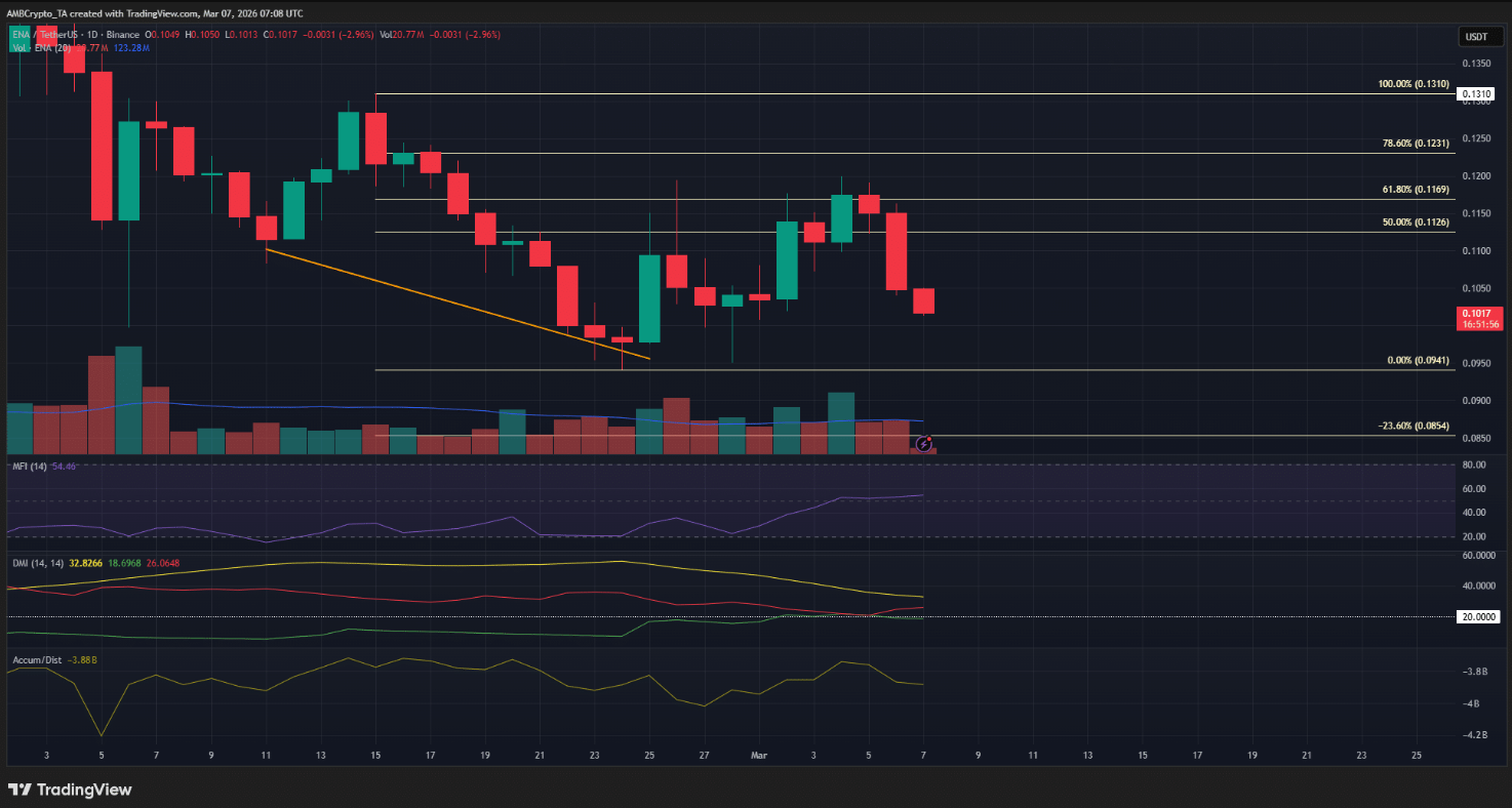 Ethena (ENA) đã có cú bứt phá ấn tượng khi vươn lên mức đỉnh cục bộ 0,12 USD vào thứ Tư (04/03). Trước đó, báo cáo từ Coin Photon đã ghi nhận đà tăng giá nhanh đi kèm với sự gia tăng mạnh của hợp đồng mở (OI), một tín hiệu cho thấy tâm lý lạc quan trong ngắn hạn đang lan rộng trên thị trường.