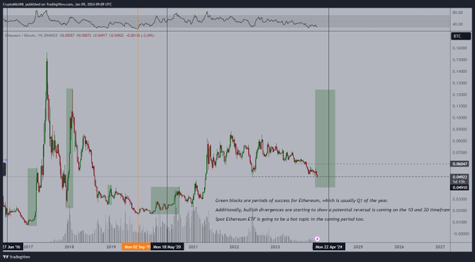 Trong khi đó, nhà phân tích Michaël van de Poppe tin rằng việc phê duyệt Bitcoin ETF giao ngay là tín hiệu để ETH tỏa sáng. Theo anh, diễn biến này có thể buộc thanh khoản luân chuyển vào hệ sinh thái Ethereum.