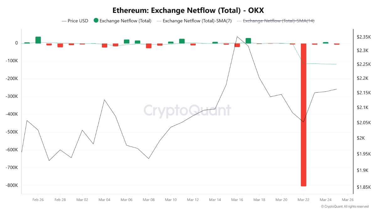 Dòng tiền ròng ETH từ sàn giao dịch (OKX) | Nguồn: CryptoQuant