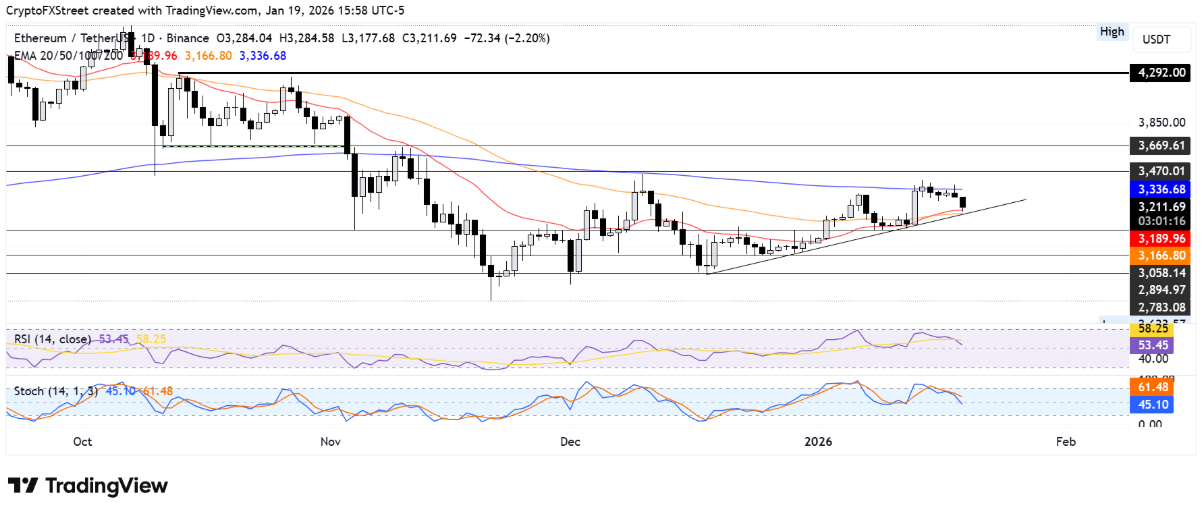 Đồng altcoin lớn nhất thị trường đã có nhịp bật lên từ đường xu hướng tăng hình thành kể từ ngày 18/12, hội tụ với các đường trung bình động hàm mũ (EMA) 20 ngày và 50 ngày. Tuy nhiên, nếu áp lực bán gia tăng và giá phá vỡ xuống dưới đường này, ETH nhiều khả năng sẽ lùi về vùng hỗ trợ quanh 3.050 USD. Ngược lại, trong kịch bản giữ vững được nhịp hồi hiện tại, Ethereum có thể hướng tới việc kiểm tra đường EMA 200 ngày – một ngưỡng kỹ thuật then chốt.