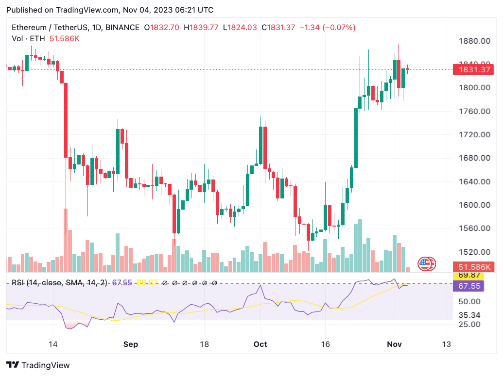 Khi xem xét kỹ hơn, những gì chúng ta đang chứng kiến với Ethereum có thể chỉ là sự tiếp nối của mô hình biểu đồ “cốc và tay cầm”. Mô hình cổ điển này quen thuộc với nhiều nhà đầu tư, thường chỉ ra xu hướng tăng sau khi mô hình hoàn thành. “Chiếc cốc” tượng trưng cho một đáy tròn, thể hiện một giai đoạn củng cố, trong khi “tay cầm” báo hiệu một xu hướng giảm nhẹ trước khi có khả năng breakout. Trong trường hợp của Ethereum, đợt giảm giá gần đây có thể hình thành phần tay cầm của mô hình này, gợi ý về một động thái đi lên sắp xảy ra.