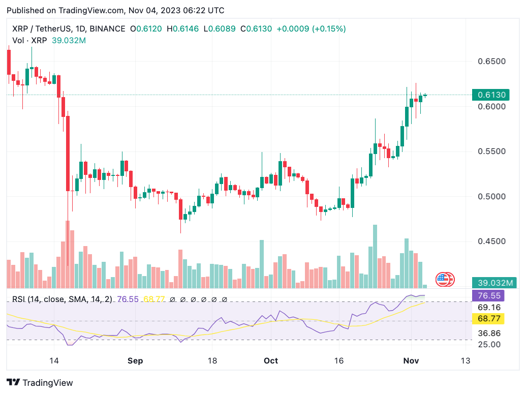 Trong trường hợp của XRP, mặc dù có quỹ đạo tăng giá nhưng khối lượng giao dịch vẫn có xu hướng giảm nhất quán. Sự khác biệt giữa giá và khối lượng giao dịch này khiến mọi người phải ngạc nhiên. Nó chỉ ra rằng có ít trader ủng hộ đợt tăng giá hiện tại, điều đó có thể có nghĩa là đợt tăng giá thiếu động lực cần thiết để tiếp tục. Một khi người mua hiện tại cạn kiệt sức mua, việc thiếu vắng các trader mới để hỗ trợ xu hướng tăng có thể dẫn đến giá bị thoái lui.