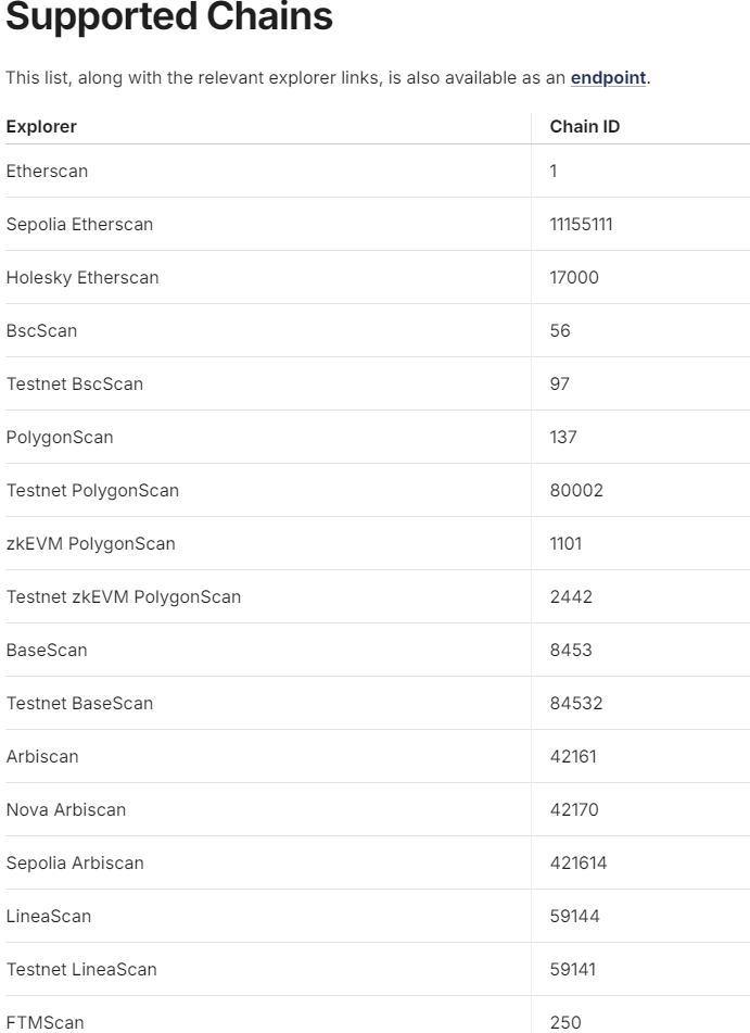 API mới này giúp giảm thời gian thiết lập và đơn giản hóa code, đồng thời tương thích với phiên bản trước đó, v1. Mặc dù không phải tất cả các điểm cuối chain đều được hỗ trợ ngay lập tức, Etherscan có kế hoạch ngừng hỗ trợ v1 theo thời gian.