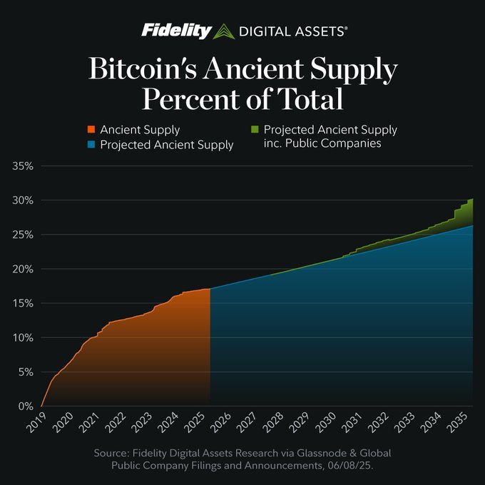 Fidelity là đơn vị phát hành Bitcoin ETF hàng đầu, do đó, công ty này đã dẫn đầu trong việc tiến hành nghiên cứu, tuyên bố rằng 17% nguồn cung, tương ứng khoảng 3,4 triệu BTC đã trở thành Bitcoin cổ, tương đương với giá trị hơn 360 tỷ USD.