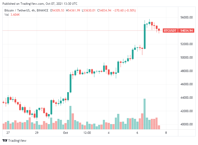 Tuần này, phe bò đã tận dụng những điều kiện thuận lợi trên và đẩy Bitcoin lên mức cao nhất kể từ ngày 12/5 tại 55.500 đô la. Đối với việc hết hạn hợp đồng quyền chọn trị giá 860 triệu đô la vào ngày 8/10, phe gấu cần một phép màu đẩy giá xuống dưới 50.000 đô la để tránh lỗ sâu.