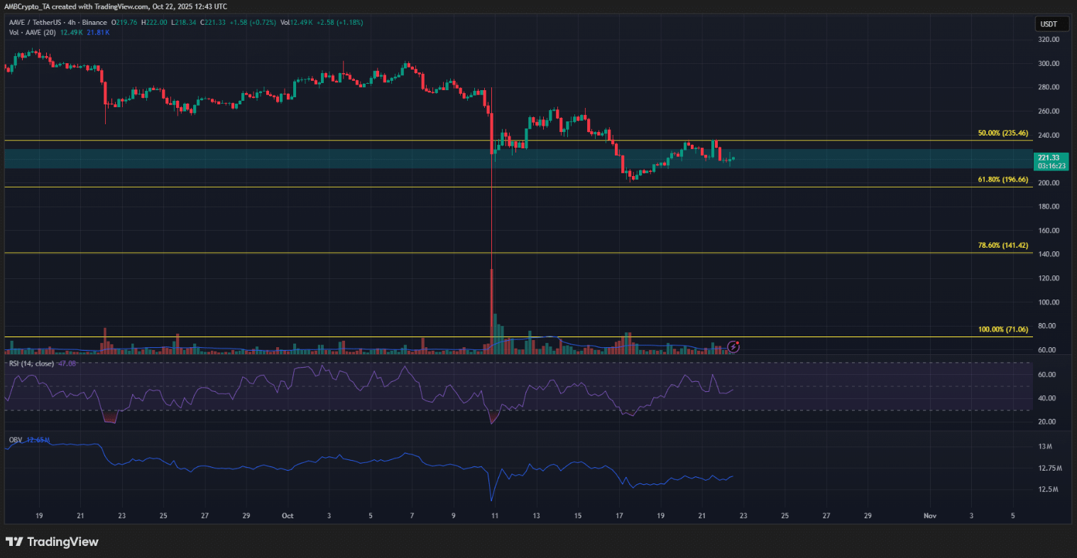 Trong ngắn hạn, vùng 235 USD và 200 USD sẽ là hai mốc then chốt quyết định hướng đi tiếp theo của AAVE.