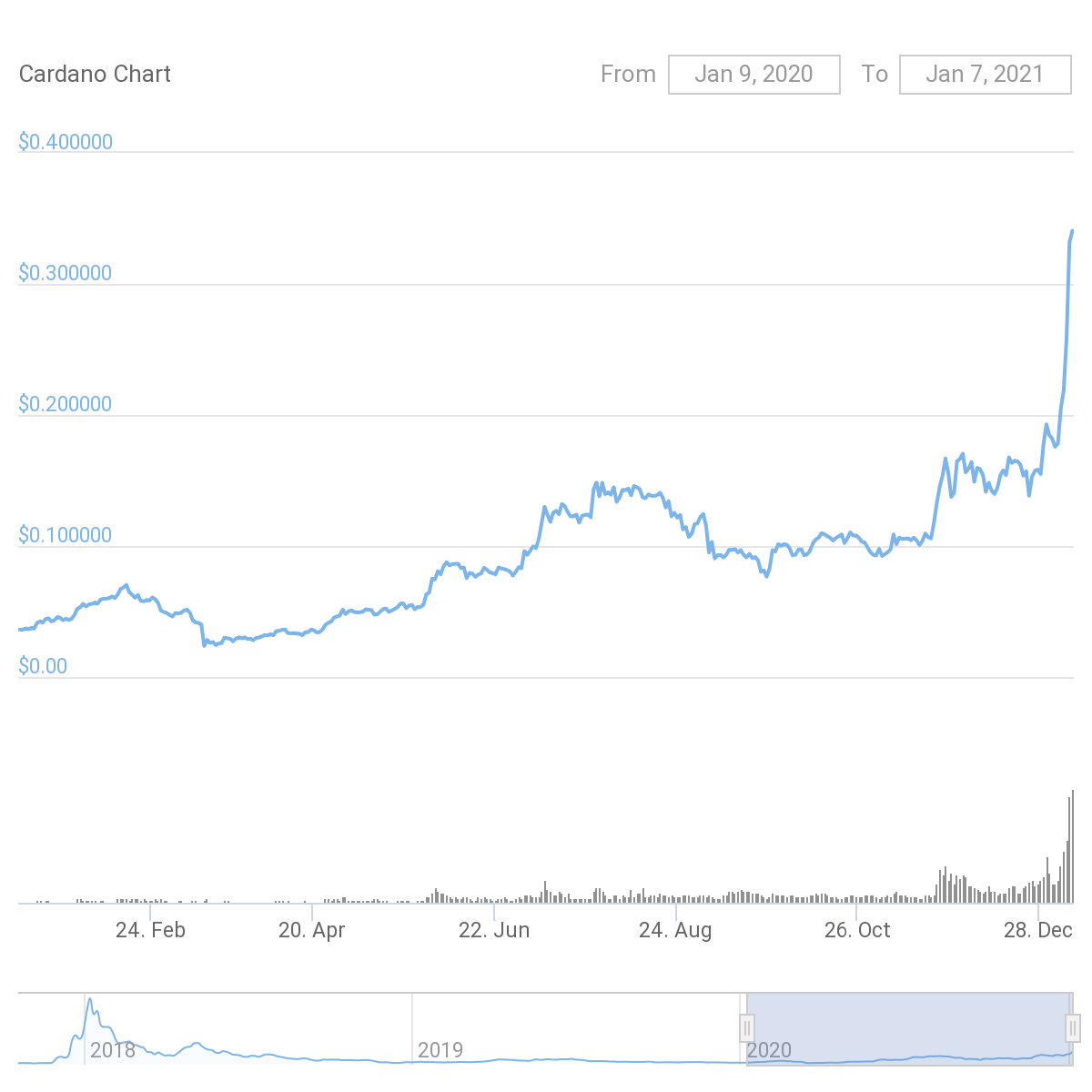 Có hai yếu tố chính đằng sau sự trỗi dậy mạnh mẽ của ADA trong suốt vài tuần qua. Đầu tiên, hầu hết các loại tiền điện tử lớn đã chứng kiến các cuộc biểu tình lớn sau xu hướng tăng của BTC lên 37.200 đô la và Cardano có một số nâng cấp mạng quan trọng sắp được triển khai vào năm 2021.