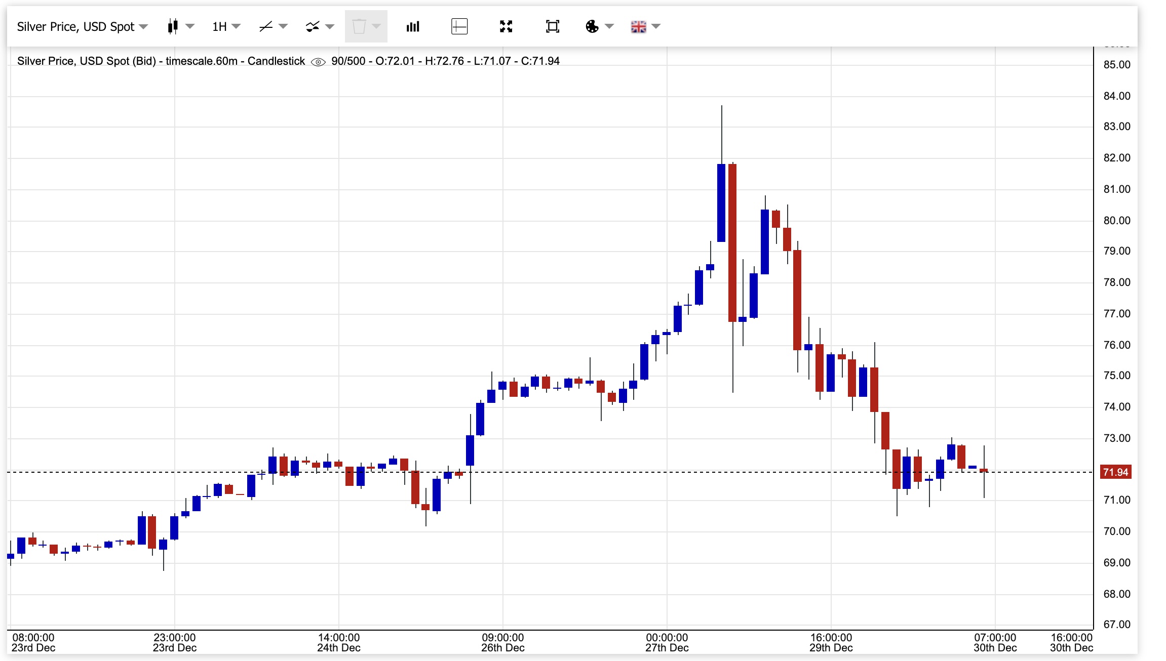 Động thái trên đã kích hoạt làn sóng giảm đòn bẩy và chốt lời, khiến giá bạc trên COMEX lao dốc tới 11% trong phiên. Không có thông báo nào từ CME về việc thành viên thanh toán vỡ nợ, cũng như không có xác nhận từ cơ quan quản lý hay các hãng tin lớn về một vụ thanh lý ngân hàng diễn ra trong đêm.