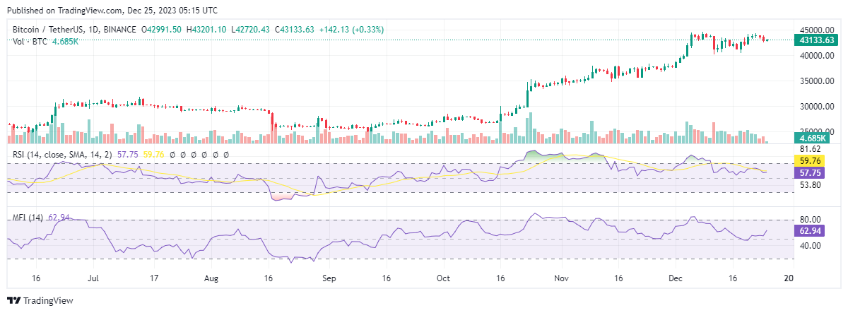 Theo CoinMarketCap, BTC đã tăng hơn 4,8% trong 7 ngày qua. Tại thời điểm viết bài, vua tiền điện tử đang giao dịch ở mức 43.133 đô la với vốn hóa thị trường hơn 853 tỷ đô la.