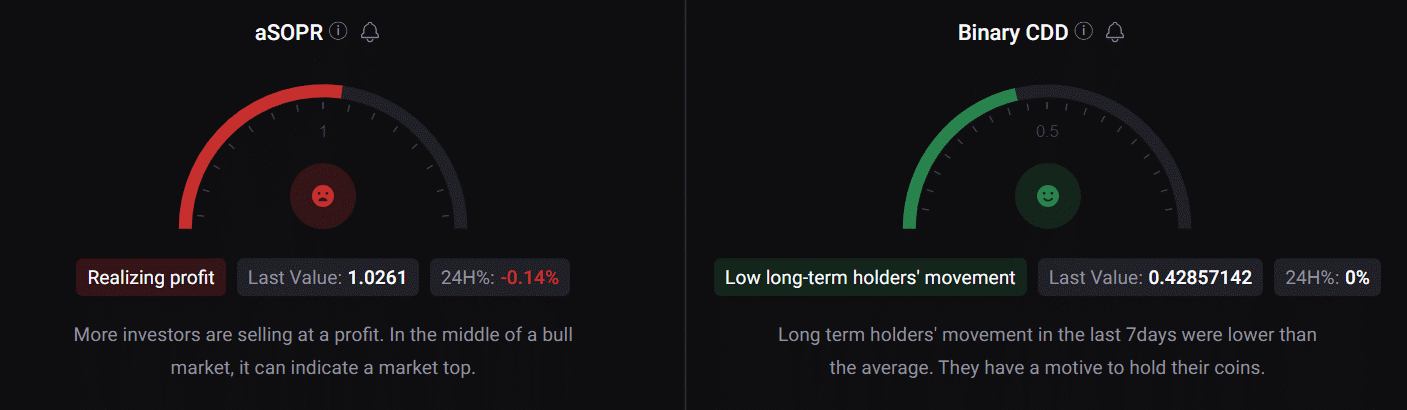 Tuy nhiên, aSORP của Bitcoin chuyển sang màu đỏ, có nghĩa là nhiều nhà đầu tư đang bán chốt lời, nên cảnh báo về đỉnh thị trường.